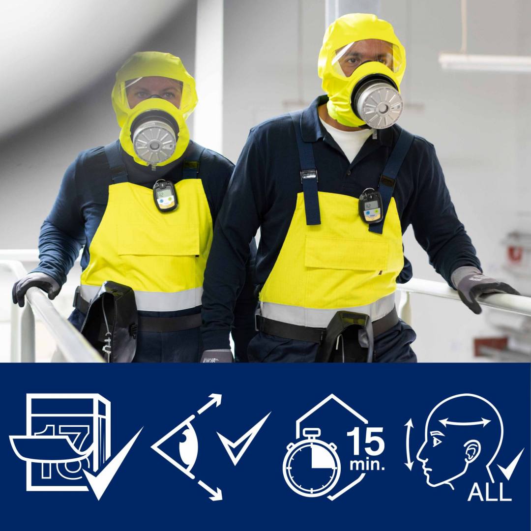 Το Dräger PARAT 7530 είναι ένας συνδυασμός πυροσβεστικής και βιομηχανικής κουκούλας διαφυγής που σας προστατεύει από τοξικά βιομηχανικά και πυροσβεστικά αέρια, σωματίδια και ατμούς για τουλάχιστον 15 λεπτά.