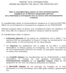 http://www.elinyae.gr/el/lib_file_upload/52b_05.1116498310987.pdf Κοινής Υπουργικής Απόφασης των Υπουργών Ανάπτυξης και Δημοσίας Τάξης «προϋποθέσεις διάθεσης στην αγορά πυροσβεστήρων, διαδικασίες συντήρησης, επανελέγχου και αναγόμωσης»