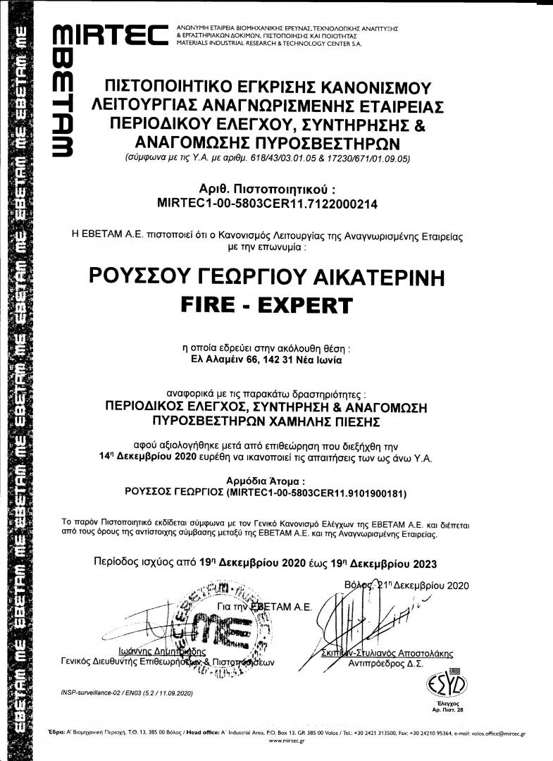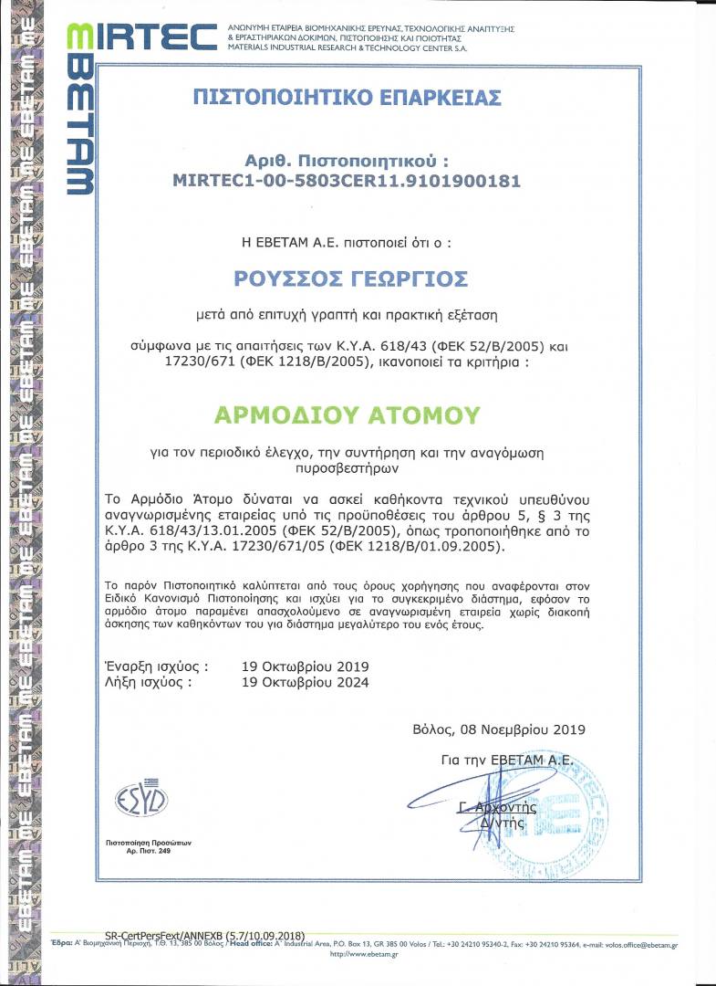 1) ΑΝΑΓΟΜΩΣΗ – ΣΥΝΤΗΡΗΣΗ ΠΥΡΟΣΒΕΣΤΗΡΩΝ